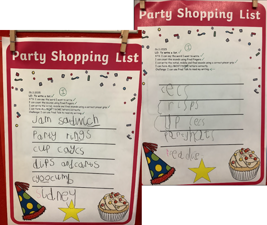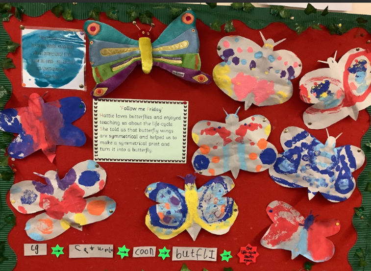 It has been a wonderfully busy time in Ruby Class, filled with lots of exciting learning opportunities. We have been working extremely hard on developing our independent writing skills and thoroughly enjoyed creating a list of party food for Ruby Bear’s 5th birthday celebration—Mrs Death even took our lists with her on a real shopping trip to Tesco! We have also begun our ‘Follow Me Friday’ sessions. Our first expert was Hattie, who taught the class all about the life cycle of a butterfly. We then created our own symmetrical butterflies using printing techniques, which looked fantastic. Alongside all of this classroom learning, we have been impressing with our enthusiastic singing and confident acting as we prepare for our performance of The Noisy Nativity. We are so proud of how hard we are working.